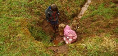 Von der Wiese aus erkundeten die Kinder täglich den Wald und seine Umgebung. Gemeinsam wurde gebaut, entdeckt und ausprobiert. Besonders stolz waren die Kinder auf ihren selbstgebauten Staudamm und ein Waldsofa aus Ästen und anderen Naturmaterialien.