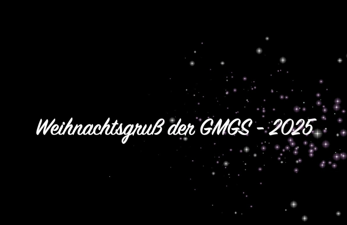 Das Bild zeigt die GMGS aus der Vogelperspektive. Auf dem Schulhof stehen alle Kinder.