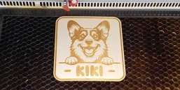 Ein Schild mit Corgi-Motiv und Name für den Lieblingsplatz des Hundes.