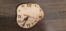 Ziffern wurden in eine Holzscheibe graviert. Anschließend wurde ein Uhrwerk verbaut und somit eine einzigartige Uhr gestaltet.